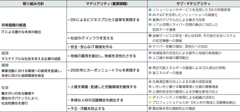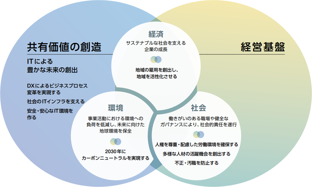 当社グループは、理念「『技術』それは、人々の喜びや社会の豊かさを生み出す力」のもと、持続可能な社会の実現と企業の持続的成長を両立していくことが重要な経営課題であるとの認識に立ち、サステナビリティ経営に取り組んでいます。戦略的に取り組むべき重要課題をマテリアリティとして特定し、サステナビリティ推進体制の強化を図り、社会課題の解決や当社グループの持続可能な成長を実現していきます。